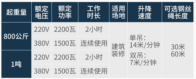 此產品體積小、重量輕、小巧操作方便,采用380V/220V電壓,適用于裝潢、吊運作業、安裝設備、搬家公司、工廠、車間、輕工、重工、維修、倉庫、物流等;
